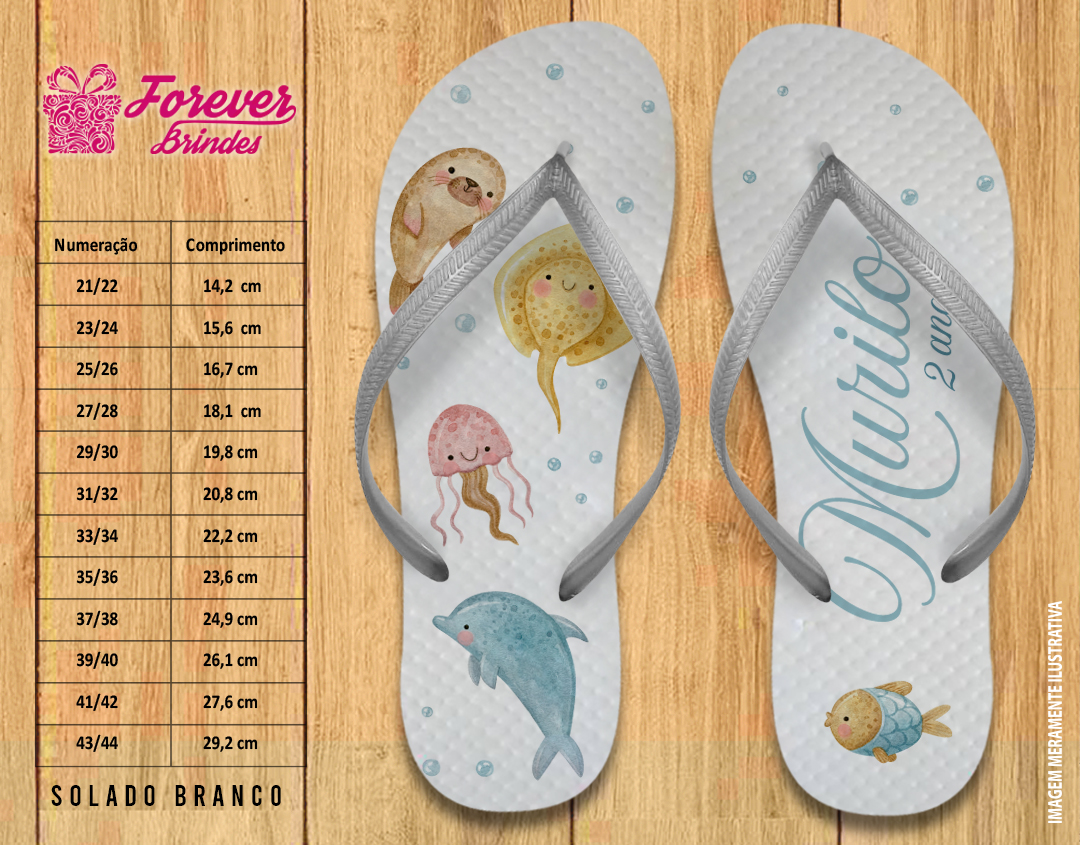 Chinelo Personalizado Aniversário Fundo do Mar