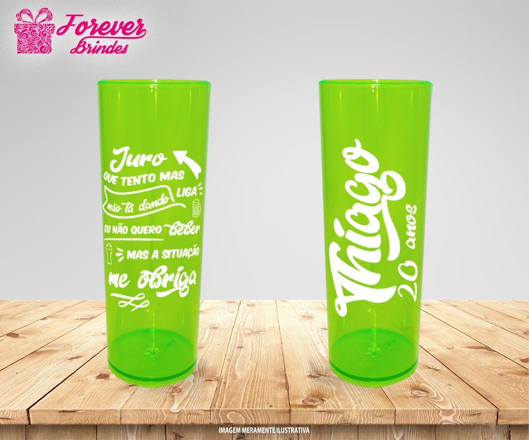 Todos os copos long drink são personalizados de acordo com a necessidade de cada cliente, é só informar como deseja a arte que montamos uma amostra virtual sem custo algum.