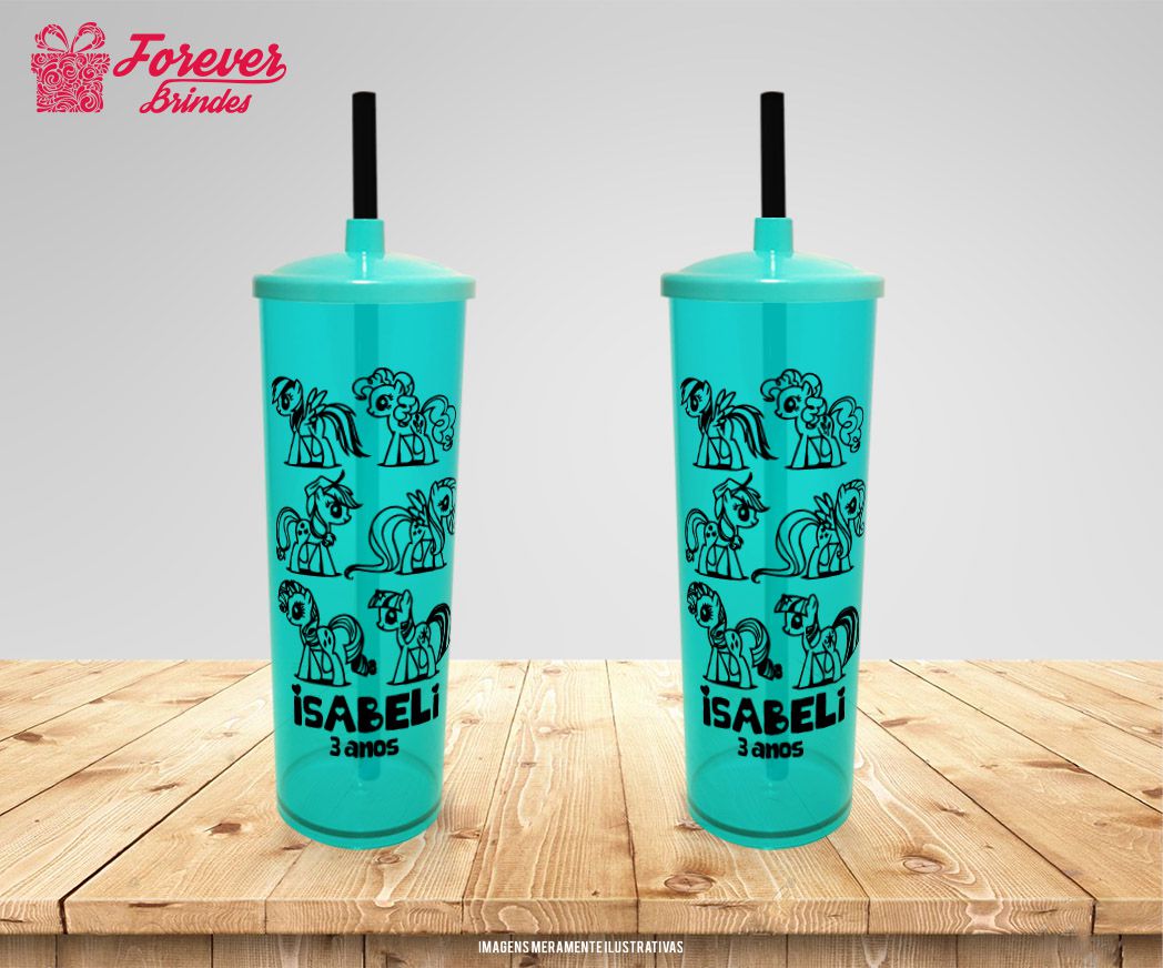 Copo Long Drink Tampa E Canudo Personalizado My Littley Pony