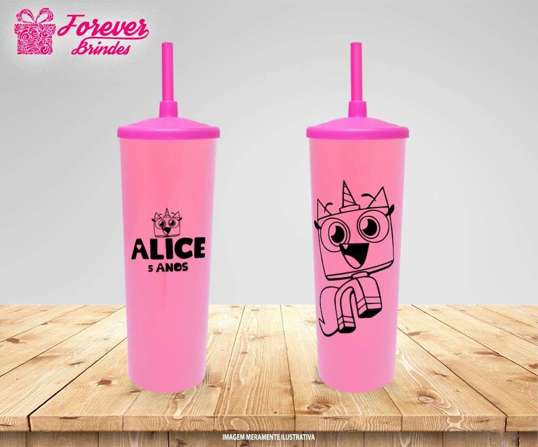 Copo Long Drink Tampa E Canudo Unikitty