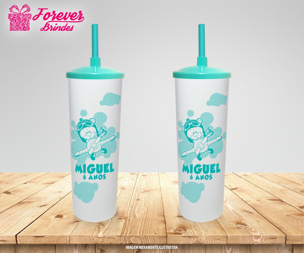 Copo Long Drink Tampa E Canudo Urso Aviador